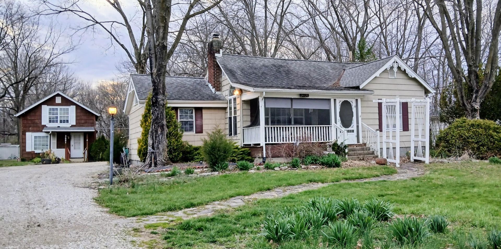 2 for 1! This almost-2-acre property has two houses; 3BR/1BA Ranch + 1BR/1BA Cape Cod guest house/in-law suite/long-term rental. Unlimited possibilities! Bring your personal touch! Baths are fairly updated in primary house. Washer and electric dryer convey. All sheds convey. Documented sq. ft. is total of both homes. This property has so much potential!!!
